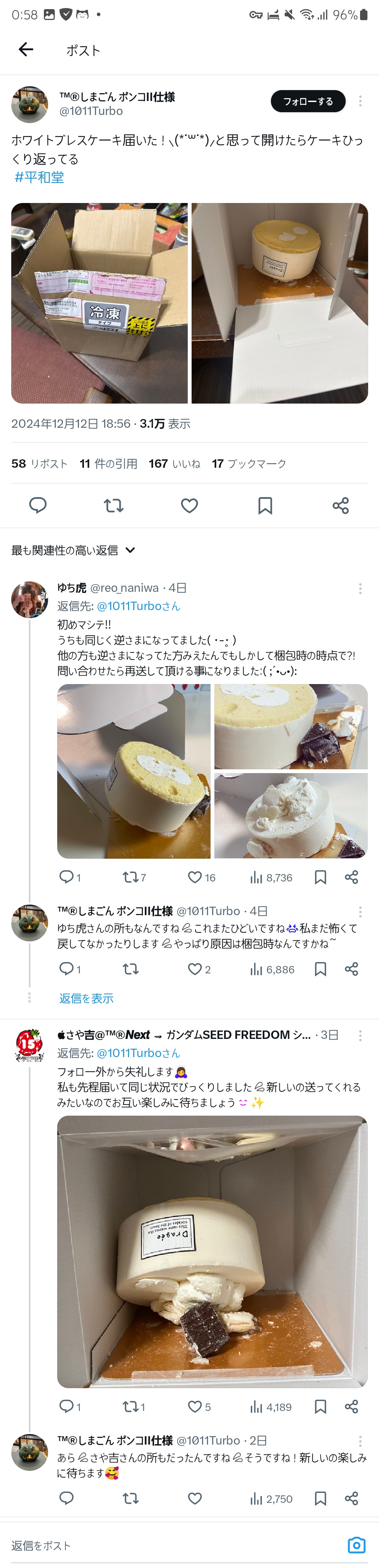 なんか高島屋・ケーキ屋・冷凍業者・配送業者がそれぞれ責任の擦り付けあいしとってどこが悪かったのか結局うやむやにされたよな