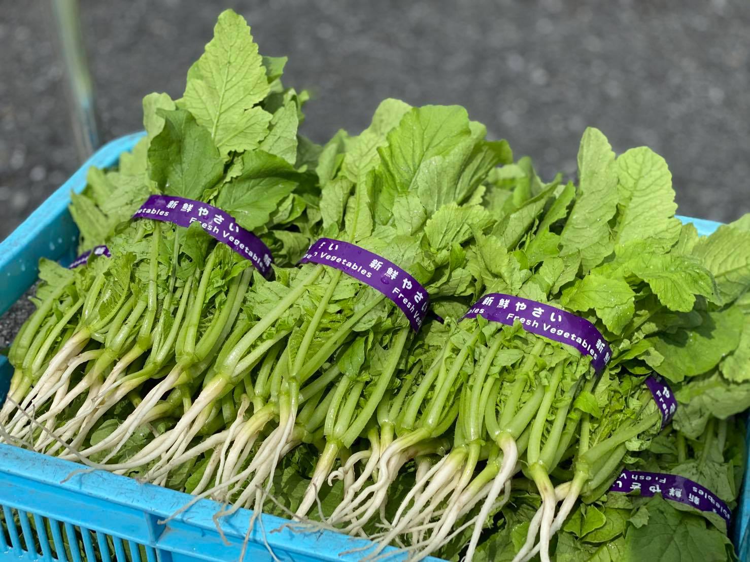 間引き菜の場合も葉物として専用に作っとる場合も有るけど今の時期やと春物大根の間引きが多いけど結構茎葉共に堅めだと思うから春まきの大根まで待った方が良い