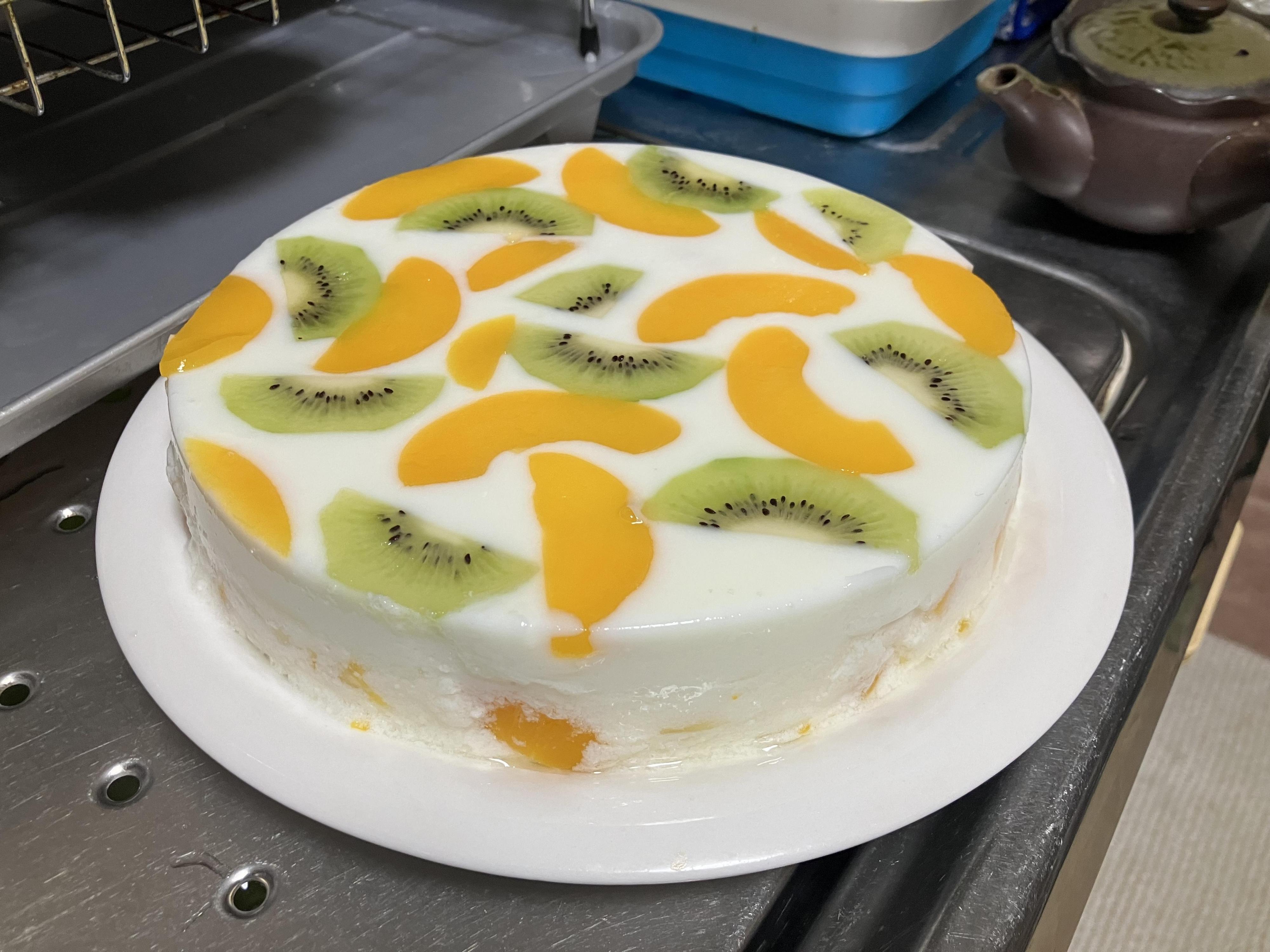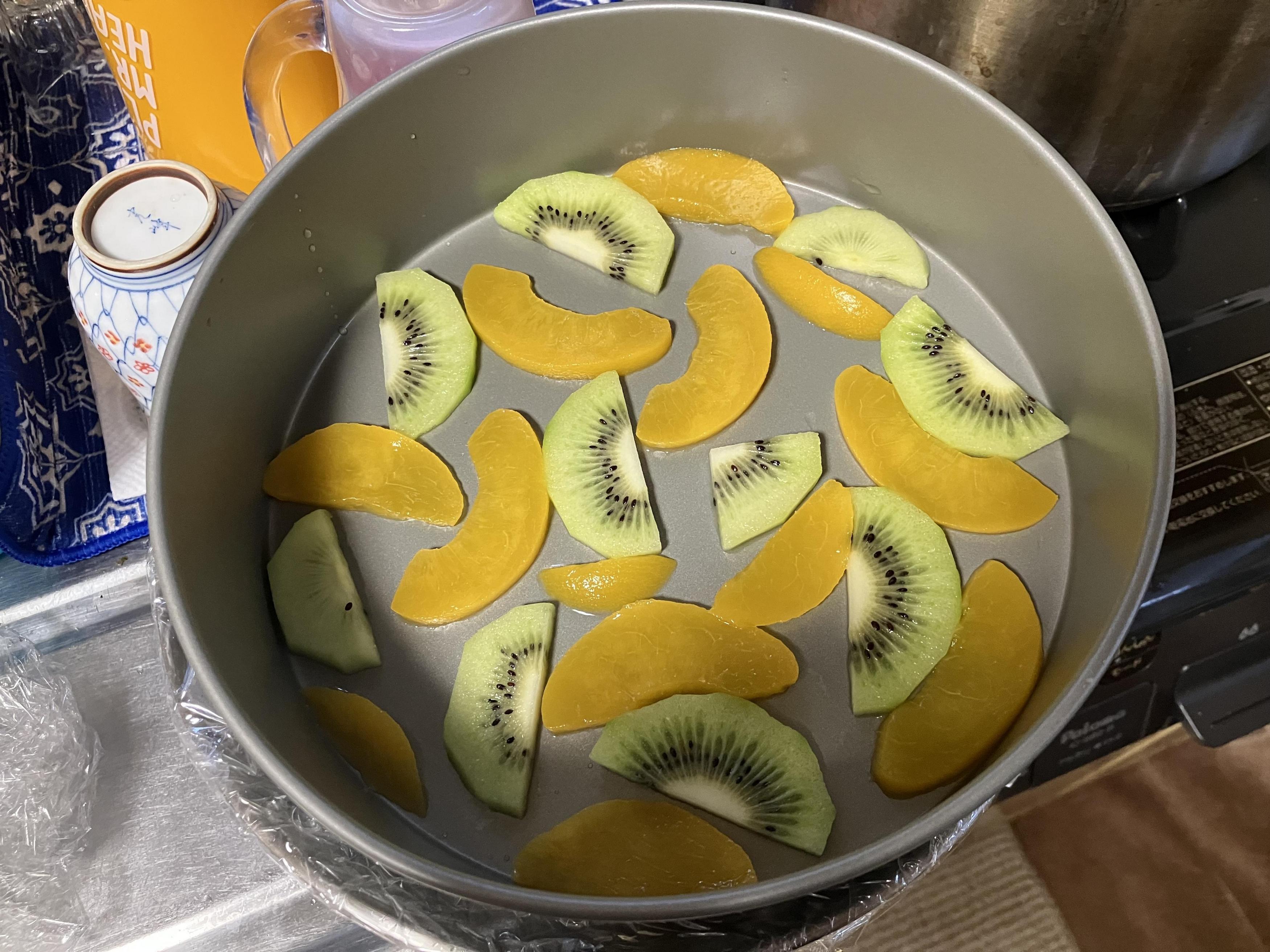 カップケーキみたく一人前ずつ小分けにして、ついでに表面の飾りの果物は底面に沈めるじゃなく最後に立体的に飾り付けるようにした方が見栄えしそうやな