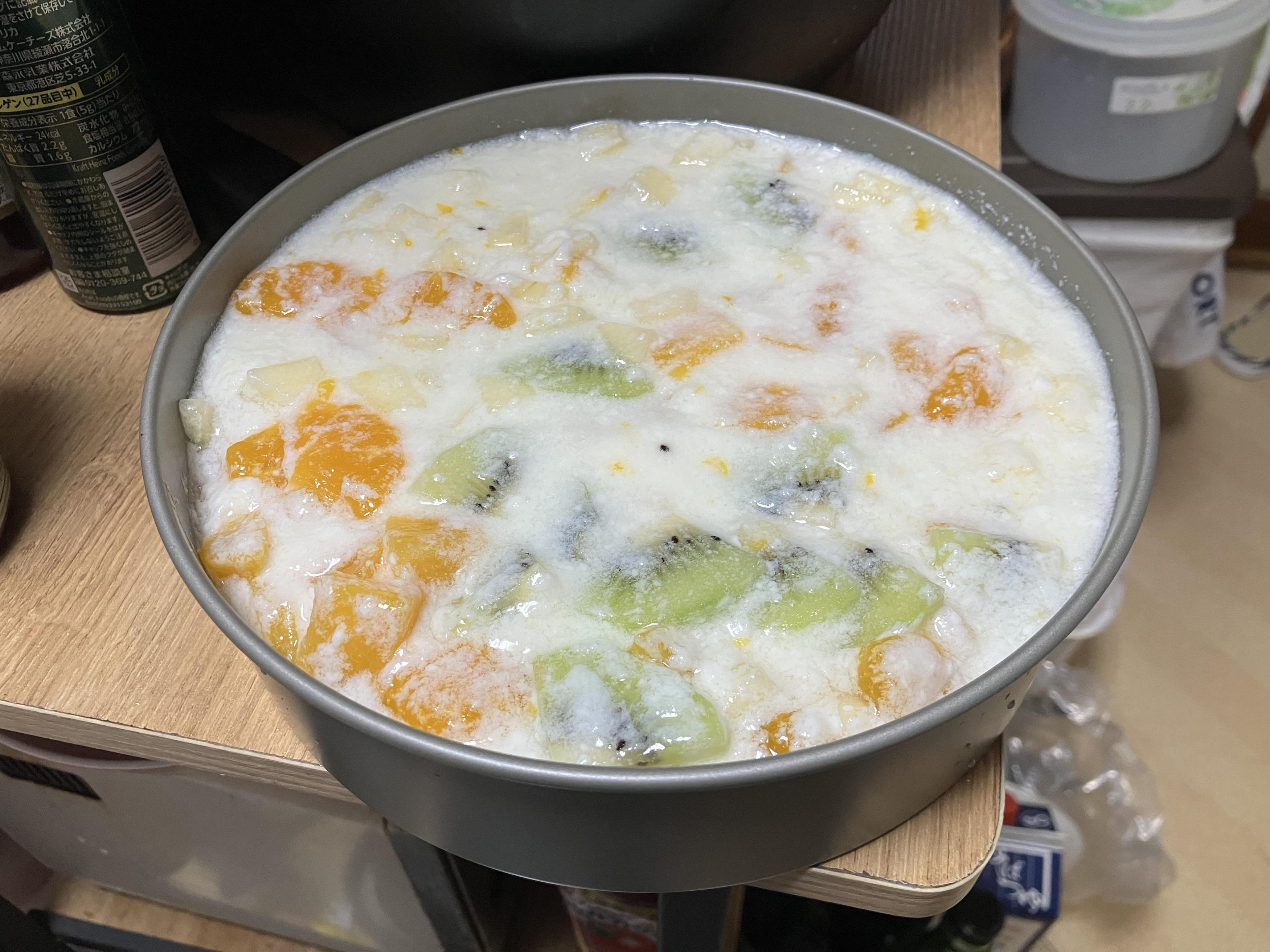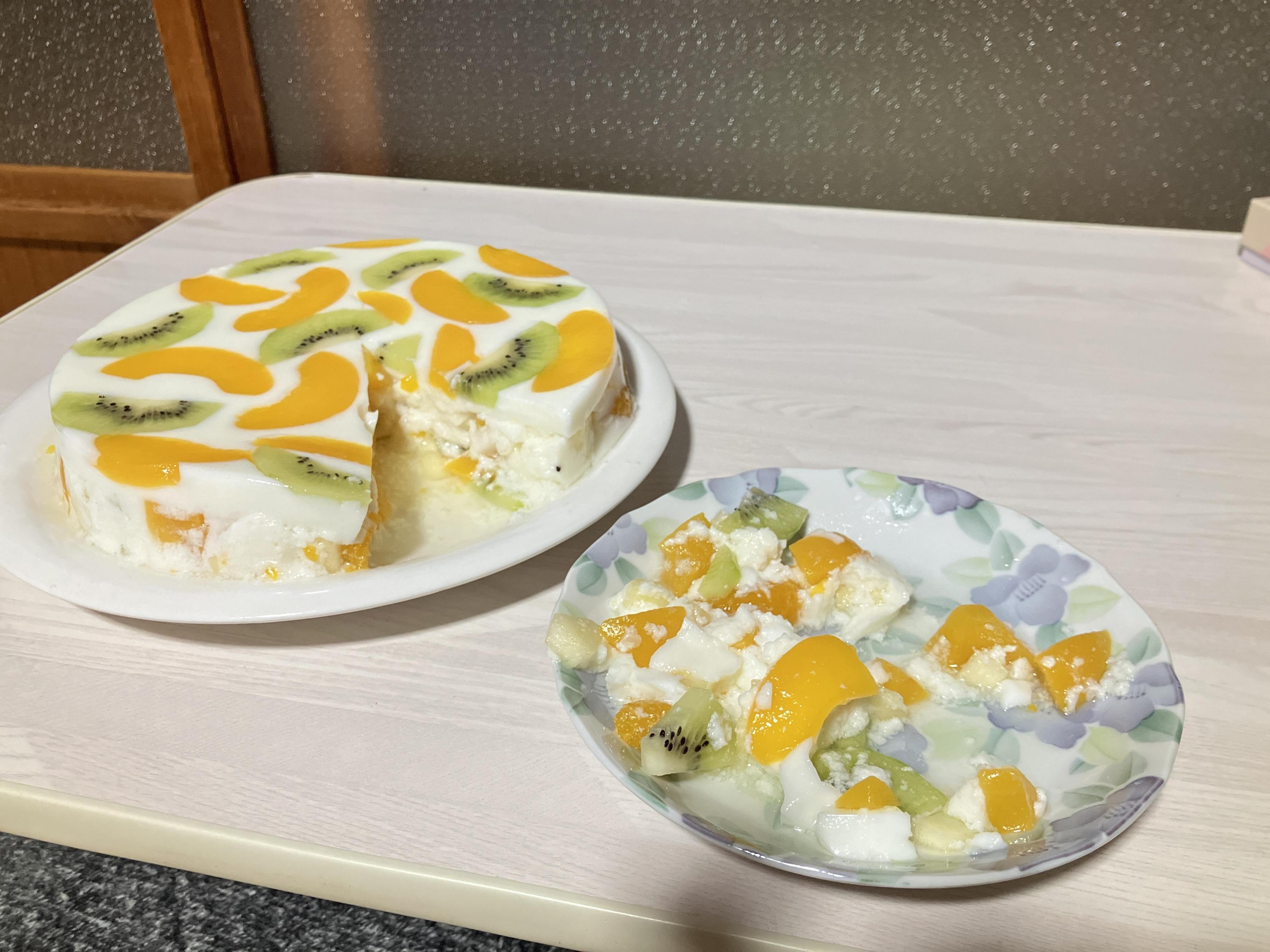 純粋にゼラチンが足りんかったのはそうだがフルーツをジャムにすれば固まったかも🦆