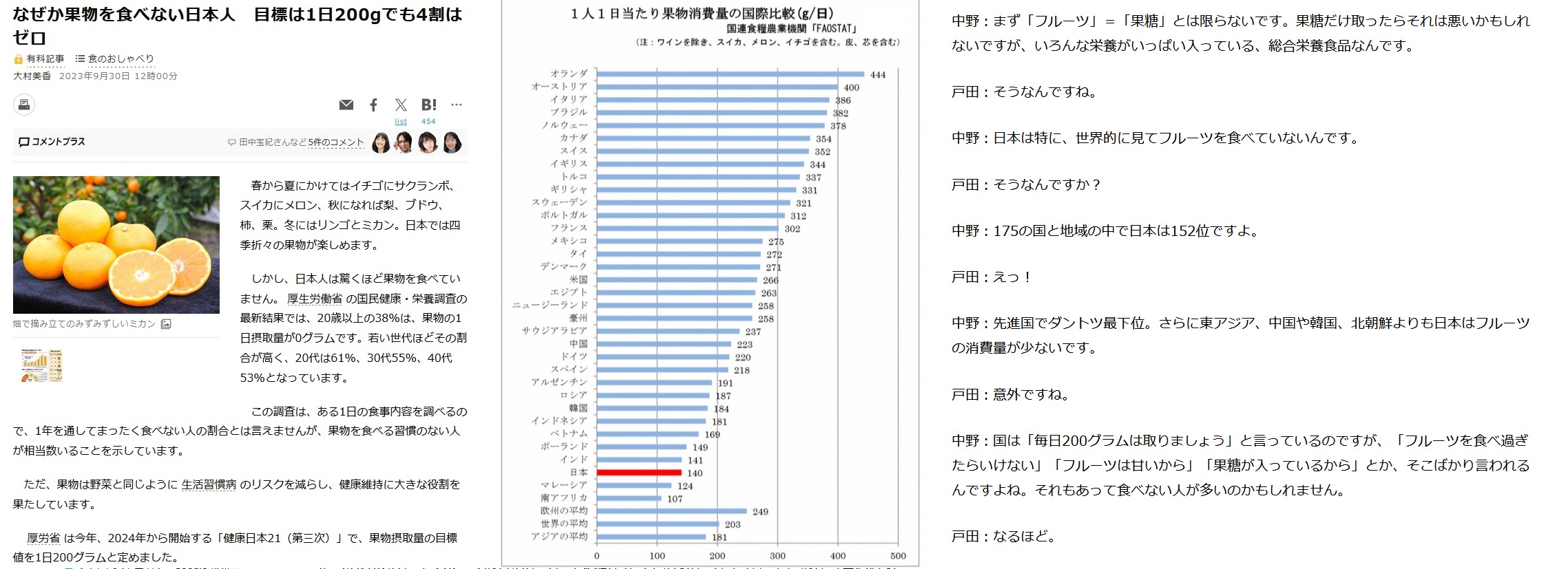 果物農家「どうして日本人は果物を食べてくれないのですか?北朝鮮以下ですよ」
