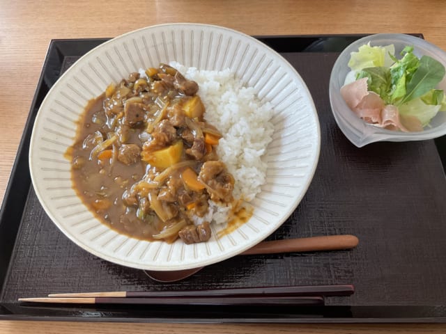 カレーだけじゃなく、器の向きを考えて盛り付けするのは基本だよな。