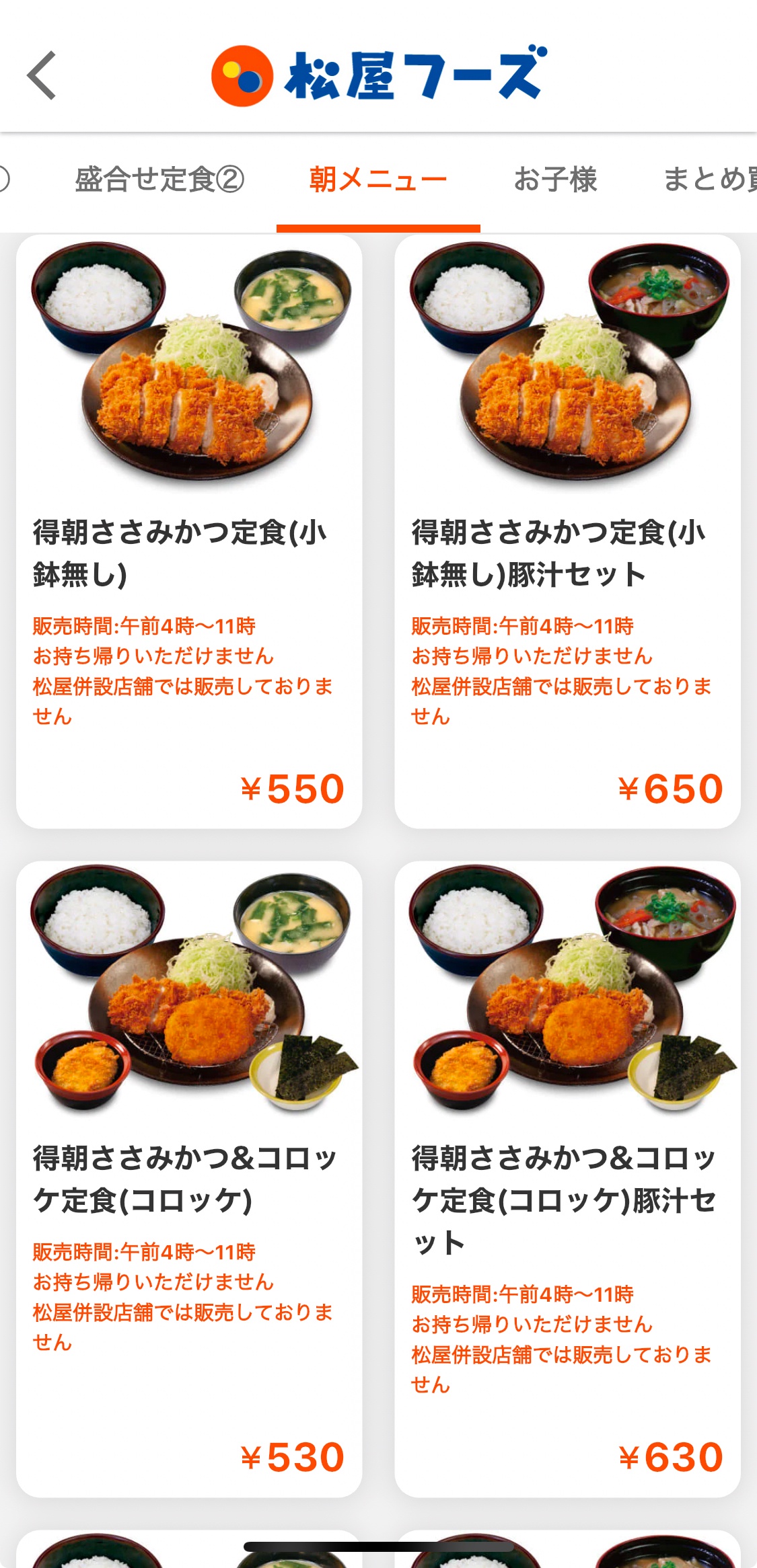 朝から朝得ロースかつ余裕で食える。デブじゃないからご飯とお味噌汁のお代わりもする