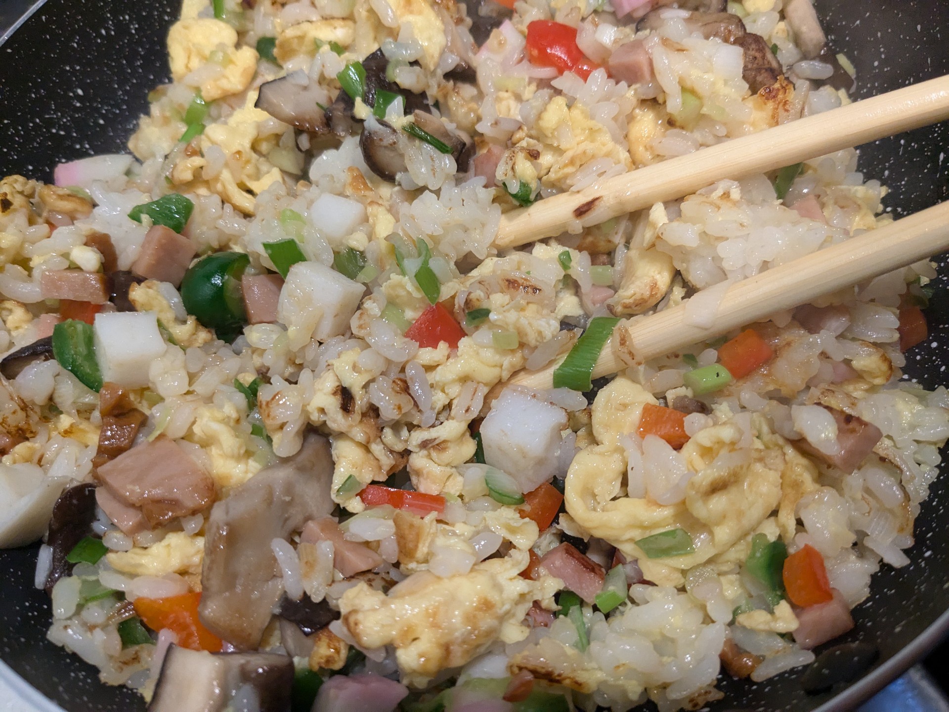 たまった冷凍ご飯と干し椎茸の出し殻を処分する為のオカン焼き飯思い出した