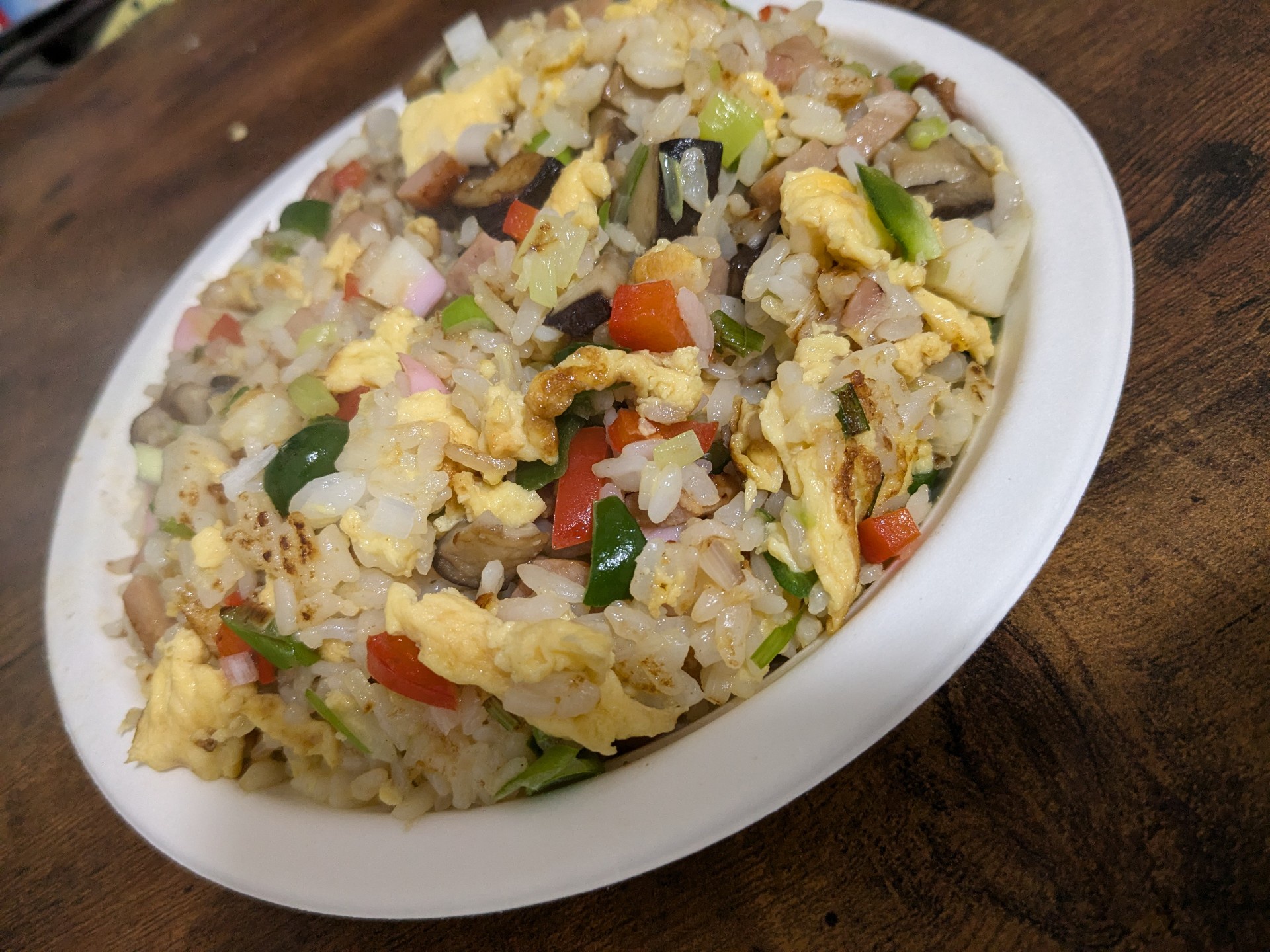 オカンが昼飯に作ってくれる冷蔵庫の半端在庫処分用の焼き飯だね