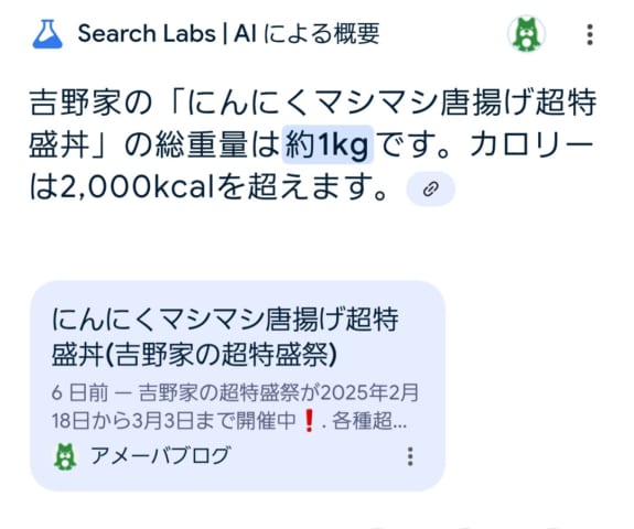 吉野家のにんにくマシマシ唐揚げ超特盛丼、限界突破wwwww