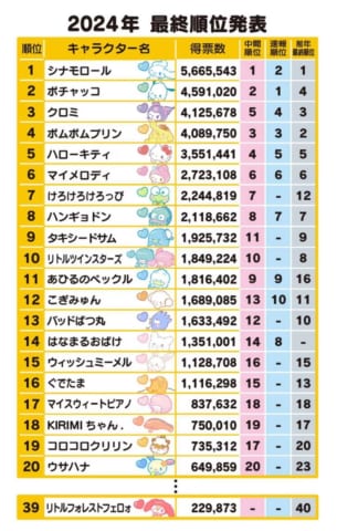 ちなみにこのランキングはサンリオ内での扱いや予算の割り振りにも影響が出ると言われている