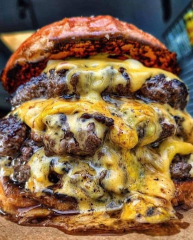 こういうデカ盛り的なハンバーガーやサンドイッチは口が開く限界以上の物を挟むな、と言いたい。