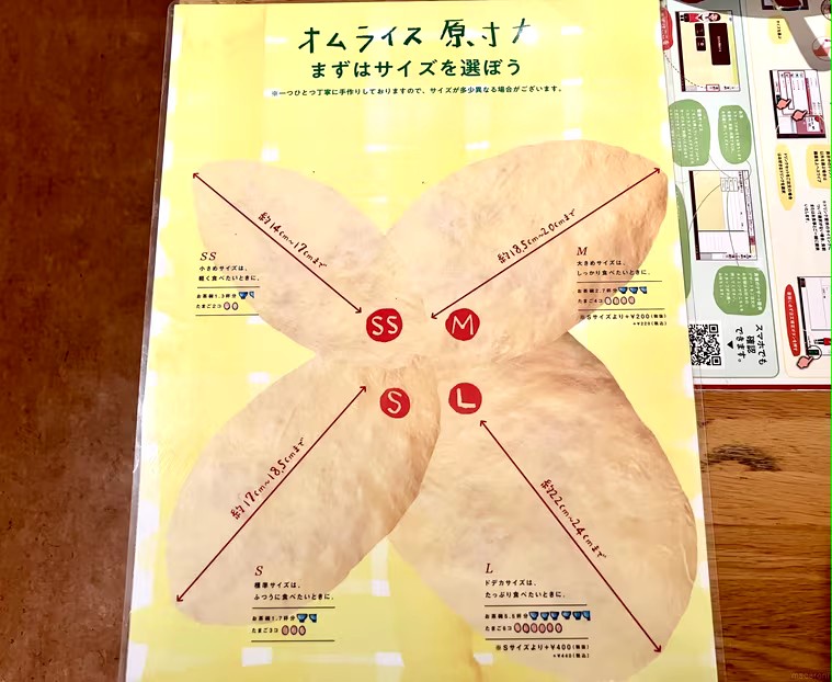 ポムの樹ではLサイズが一番大きなサイズとなります。Lサイズのイメージを大きく上回る大きさで実際に目の前に見ると驚くくらいの大きさです。ご飯の量はお茶碗6杯分、卵6個となります。SSと比較すると4倍、Sとの比較で3倍の大きさとなります。