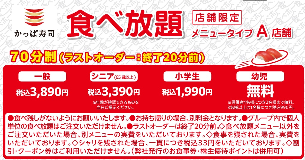 食べ放題開始年に行って、「いやこれ廃棄じゃねえの…?」「スーパーの方がよほど旨い」って寿司ばかり出されてから1回も行ってない、もちろんこれからも
