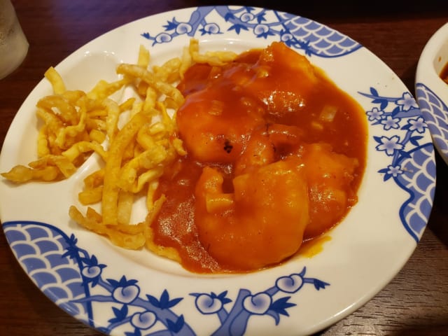エビチリについてるやつはシュウマイの皮を揚げたやつだよ