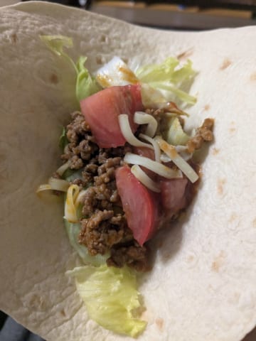 タコシェルに具材が挟みづらいからフラワートルティーヤばかりや