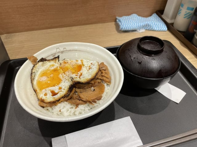 チャーシューの煮汁(肉の旨みに生姜とニンニクとネギの青いとこの香りが重要)と醤油、酒と味醂が同量、砂糖は好みの分量に味の素を合わせて水で調整すれば松屋の1/4の金額で遥かに美味しいのが家で食べられるんだわ。