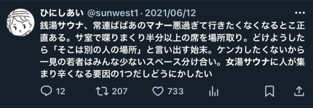 サウナは一ヶ月に一回程度やがそんなマナーの人は見たことないな