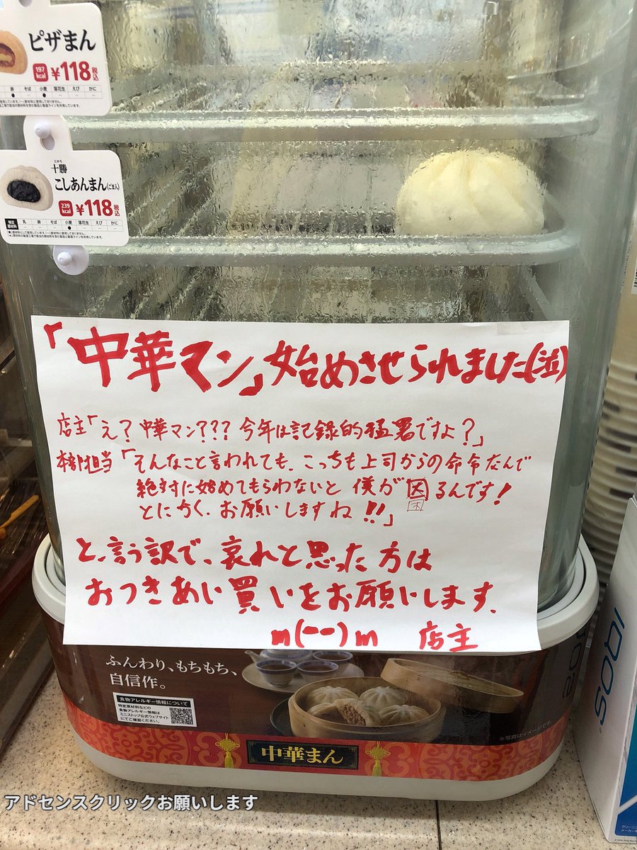 暑い日に冷房ガンガンのコンビニ店内で食べるピザまんが好きやから中華まん始めましたは嬉しい