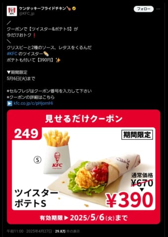 ケンタッキーのクーポン中途半端にドリンク付いてないのが無能