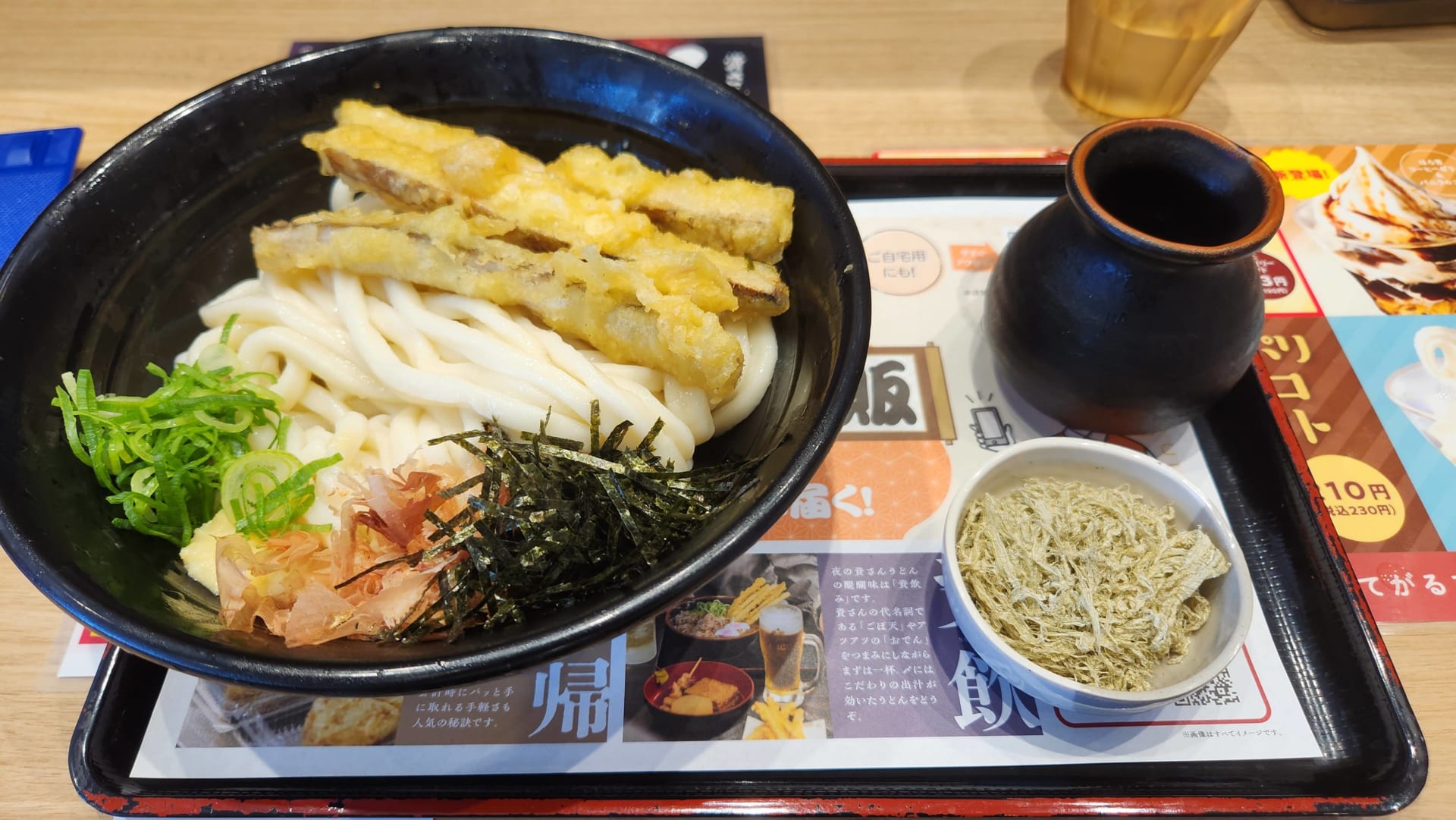 肉ゴボ天うどん、かしわ天