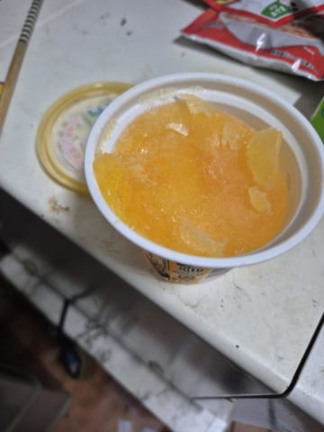 シロップのおかげでガッチガチには固まらずスプーンで簡単に削って食える