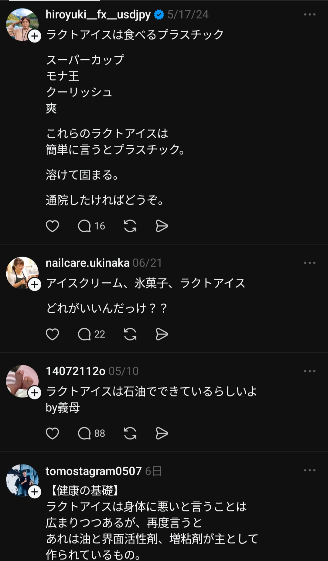 ラクトアイスもマーガリンも成分の「一部」がプラスチックと共通してるってだけなのに