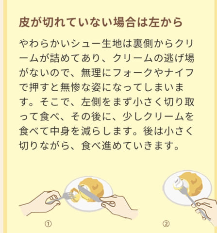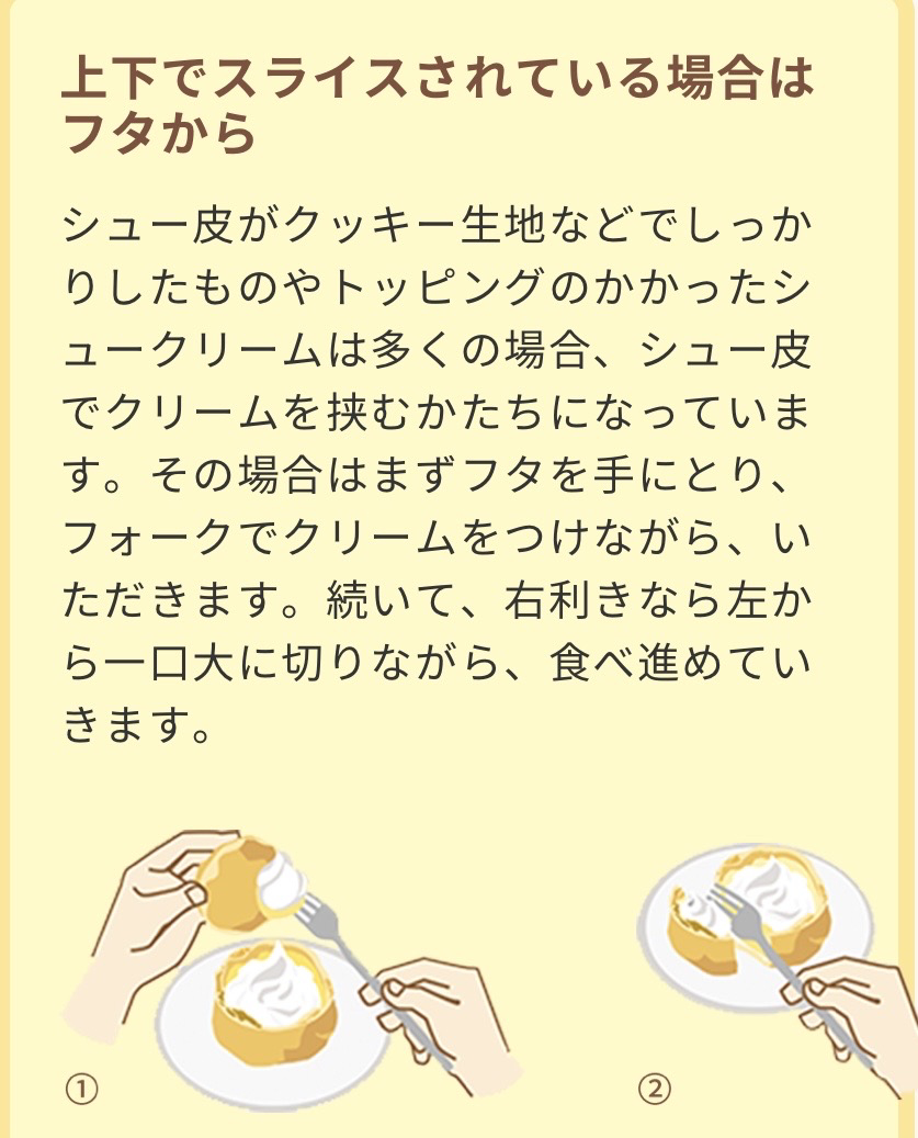 シュークリームは噛んだ時にクリームも吸い込んで口に入れれば良いだけだからどうにでもなる