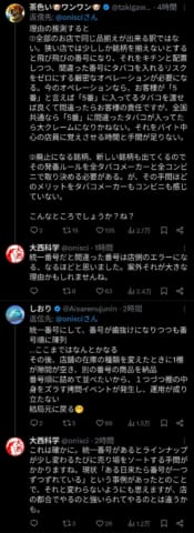 番号が被ったら余計混乱するから、たばこメーカー各社とも同期して割り振らないと行けない気がする