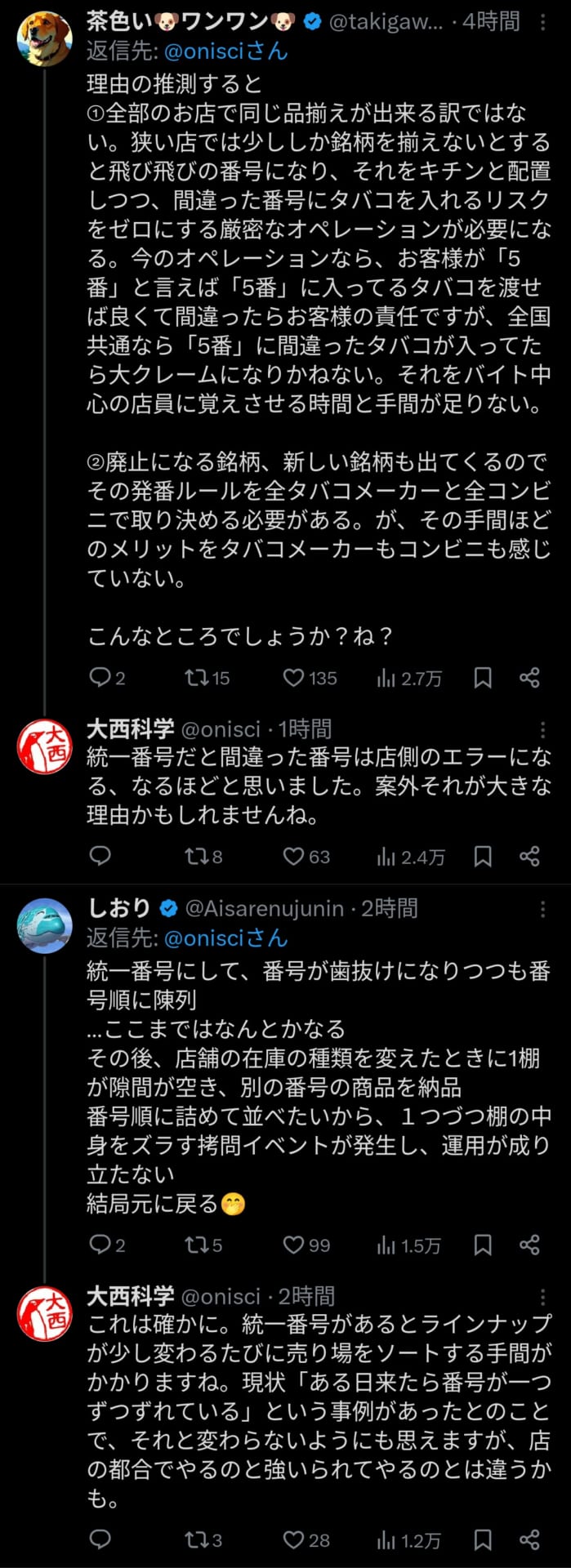 銘柄を覚えられない低能チンパン店員のための番号付けなのに番号を統一して店側のエラーになるのは嫌とか舐めてんのか