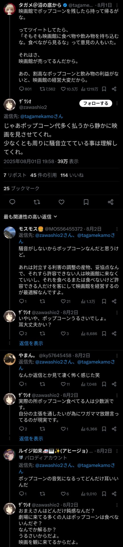 ポップコーンっていうかそもそも他人が存在してる事が迷惑だからな、どこまでわがまま言うかってだけ