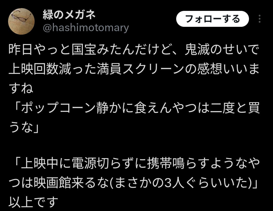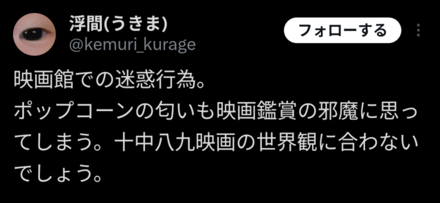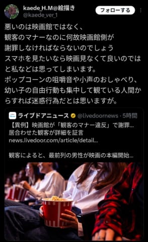 映画館で売ってるもん食って何が悪いねん スクショ見てへんけどウダウダ言う余地ないやろ