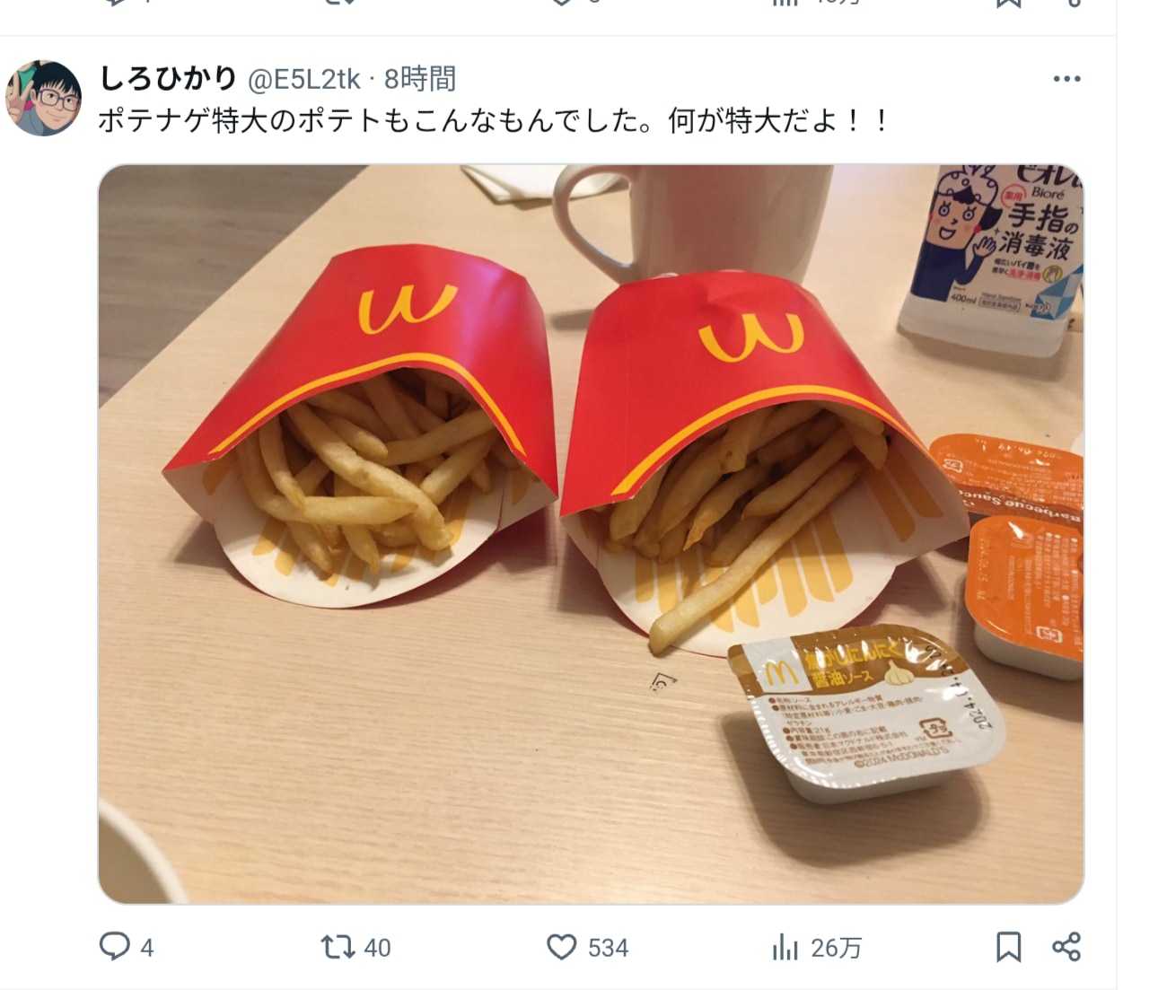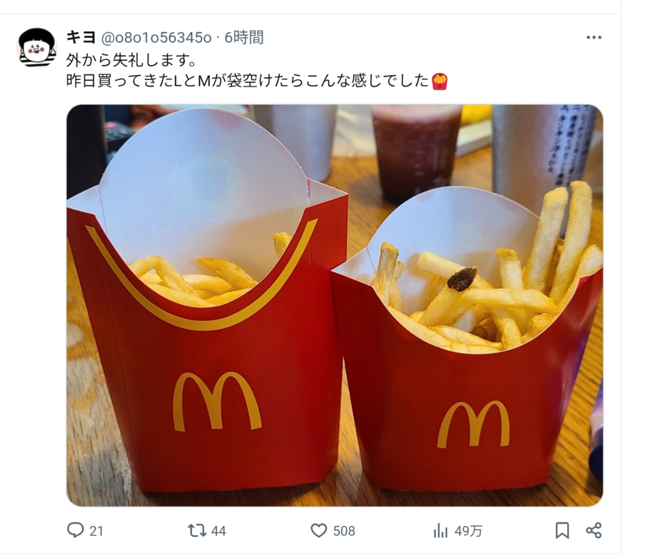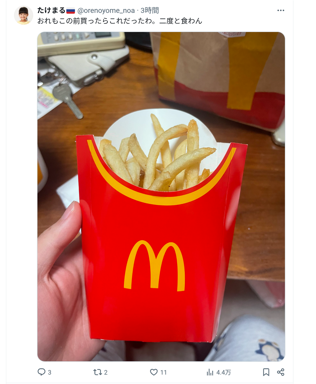【悲報】マクドナルドのポテト、なんかバレはじめる