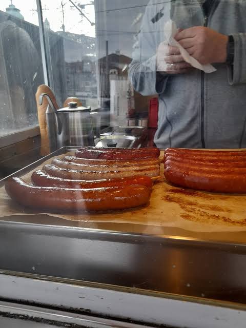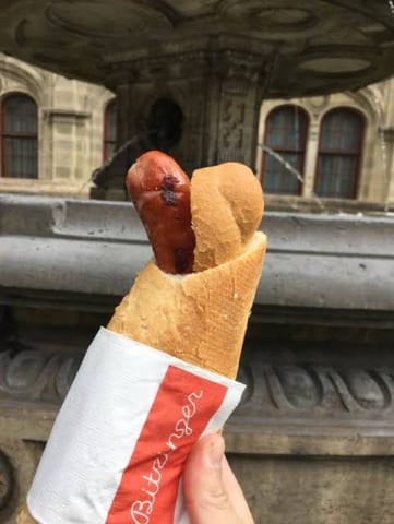 私の記憶が確かならば、ドイツのホットドッグは焼いたウィンナーソーセージを客に手渡すために便宜パンに挟んで売ったということだった思う。