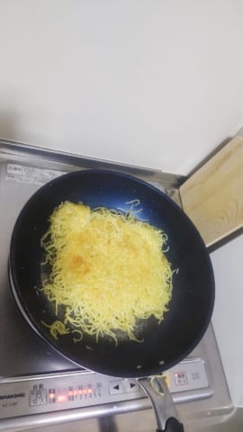 一段引き上げるには、生麺を茹でて厚くて大きな鉄板で焼くしか無い大火力が正義、家庭で再現するなら鉄の30センチフライパンで1人前づつ作る。旨みはガラスープかける