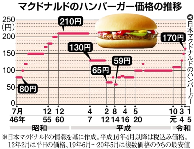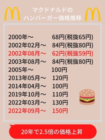 【悲報】マクドナルドのハンバーガー値段推移がすごい