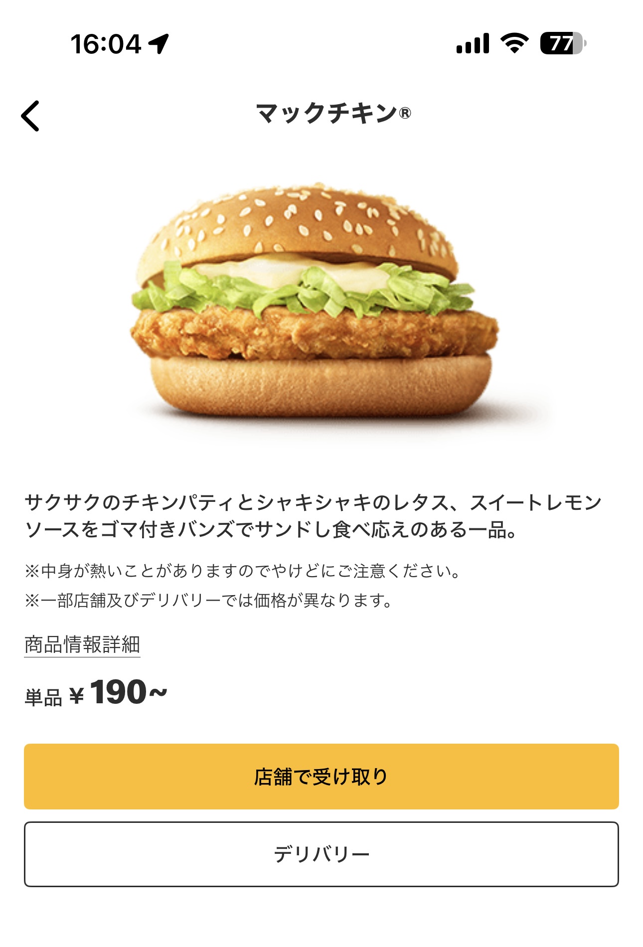 ハンバーガーチキンクリスプがコスパ悪すぎてサムライマック食う店になったな