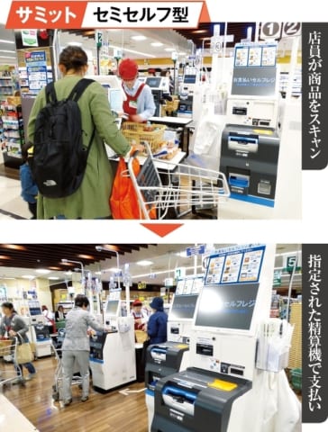スーパーは大体レジ通すのだけ店員がやって会計はセルフやな