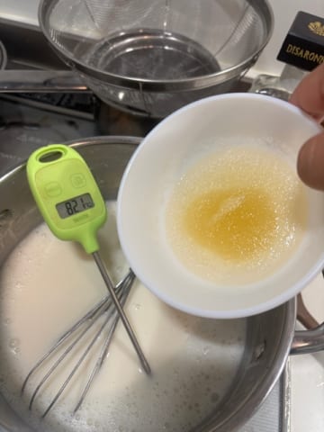 粉ゼリー以外鍋で80度にあたためて粉ゼリーを溶かして固める