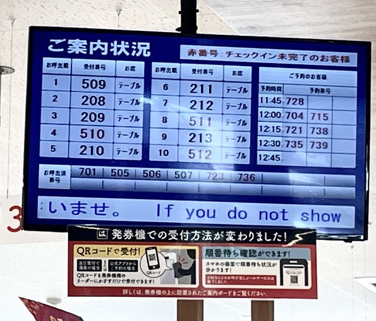 モニターみて「自分の番号あるし待つやで」って待ってても