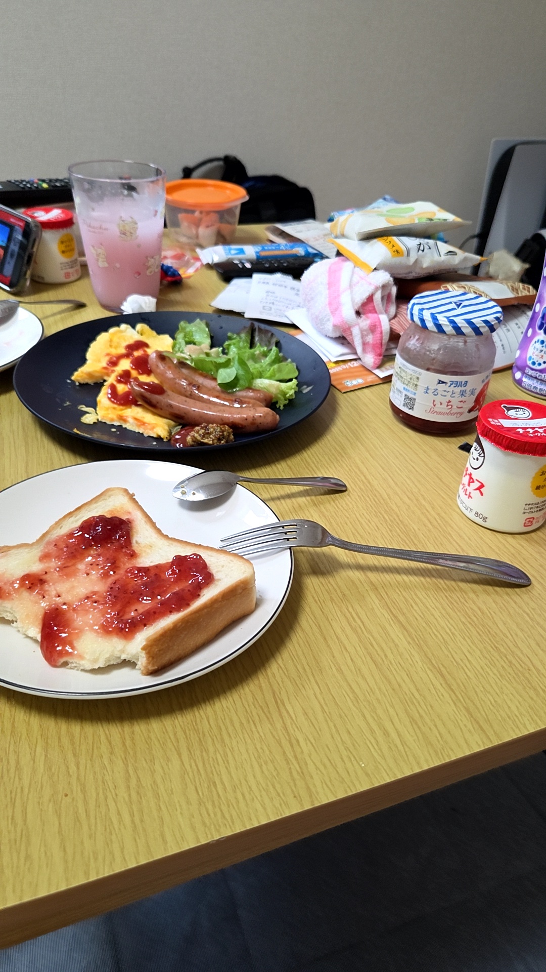 ちゃんと盛り付け綺麗にするのに机の上汚いのが違和感ある