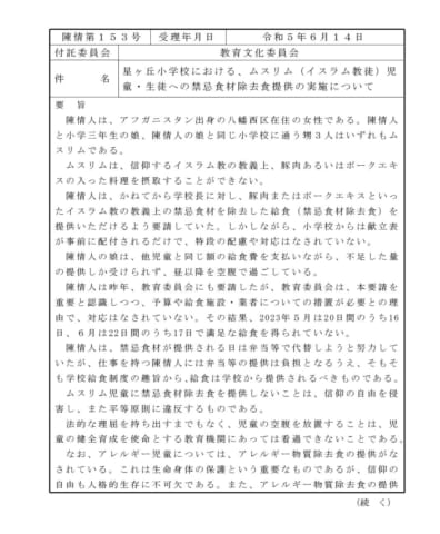 言うほど酷いか?→日本の法律上、特定の宗教に配慮してる給食はダメよね