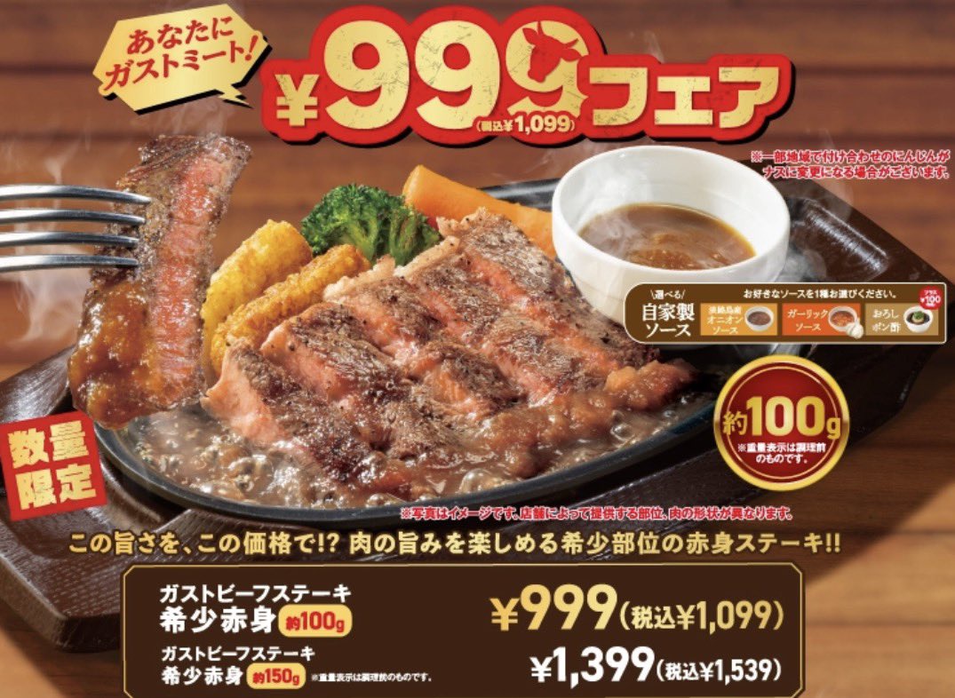 【悲報】ガスト、ステーキの写真と実物が違いすぎて炎上