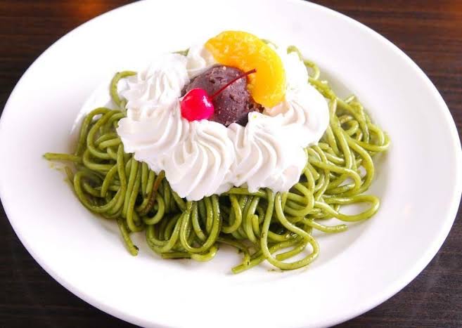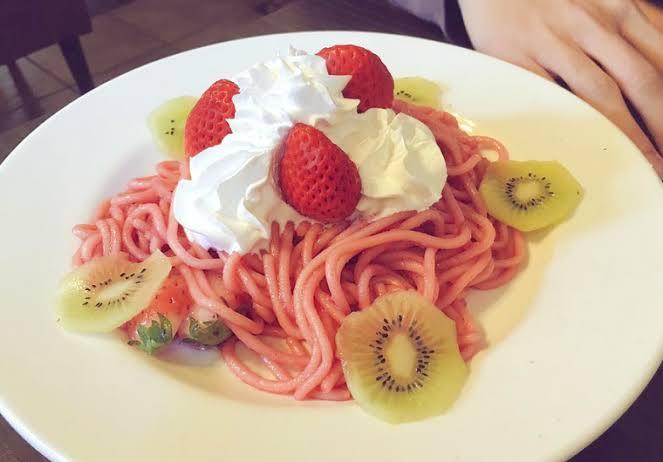 抹茶クリームパスタ/いちごクリームパスタ 名古屋が生んだ天下の奇食。 名古屋B級グルメ界の王、喫茶マウンテンで出される食事。 甘い味が練り込んであるパスタにクリームと炒めたフルーツが乗っている。 好みが分かれるので食べきれない人も多い。食べ切れると「登頂」残すと「遭難」という なおゲテモノのイメージが強いが、ご飯もの・パスタものメニューは美味くて量が多く近隣住民や大学生に愛されている