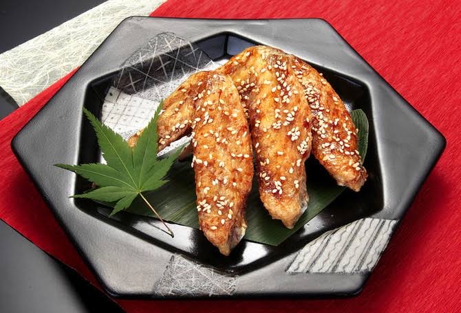 手羽先 鶏の手羽先(羽先)をから揚げにしてタレを塗り、塩・胡椒・白ごまなどを振りかけて仕上げる。パリパリとした食感とスパイスの効いた味が特徴で、酒肴として食べられる。 名古屋「風来坊」が元祖。