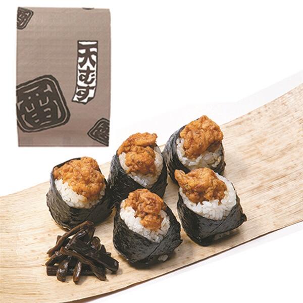 天むす おむすびにエビ天を入れただけだがとても美味しい。 「千寿」と「地雷也」が二大人気。 本当は三重県発祥。