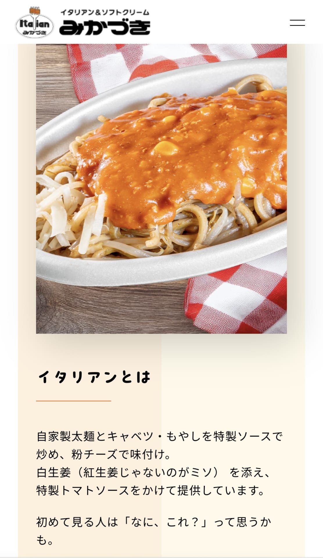 名称は「イタリアン焼きそば」。写真見る限りナポリタンに近いが