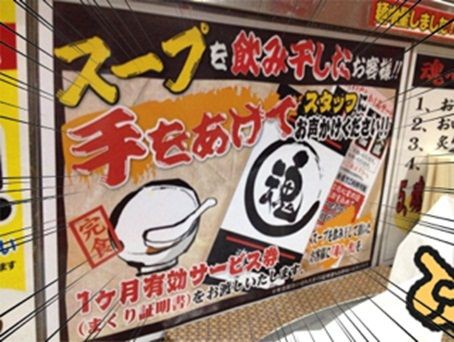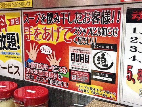 魂心家はスープまで完食でまくり券もらえて22枚で丼一個プレゼント