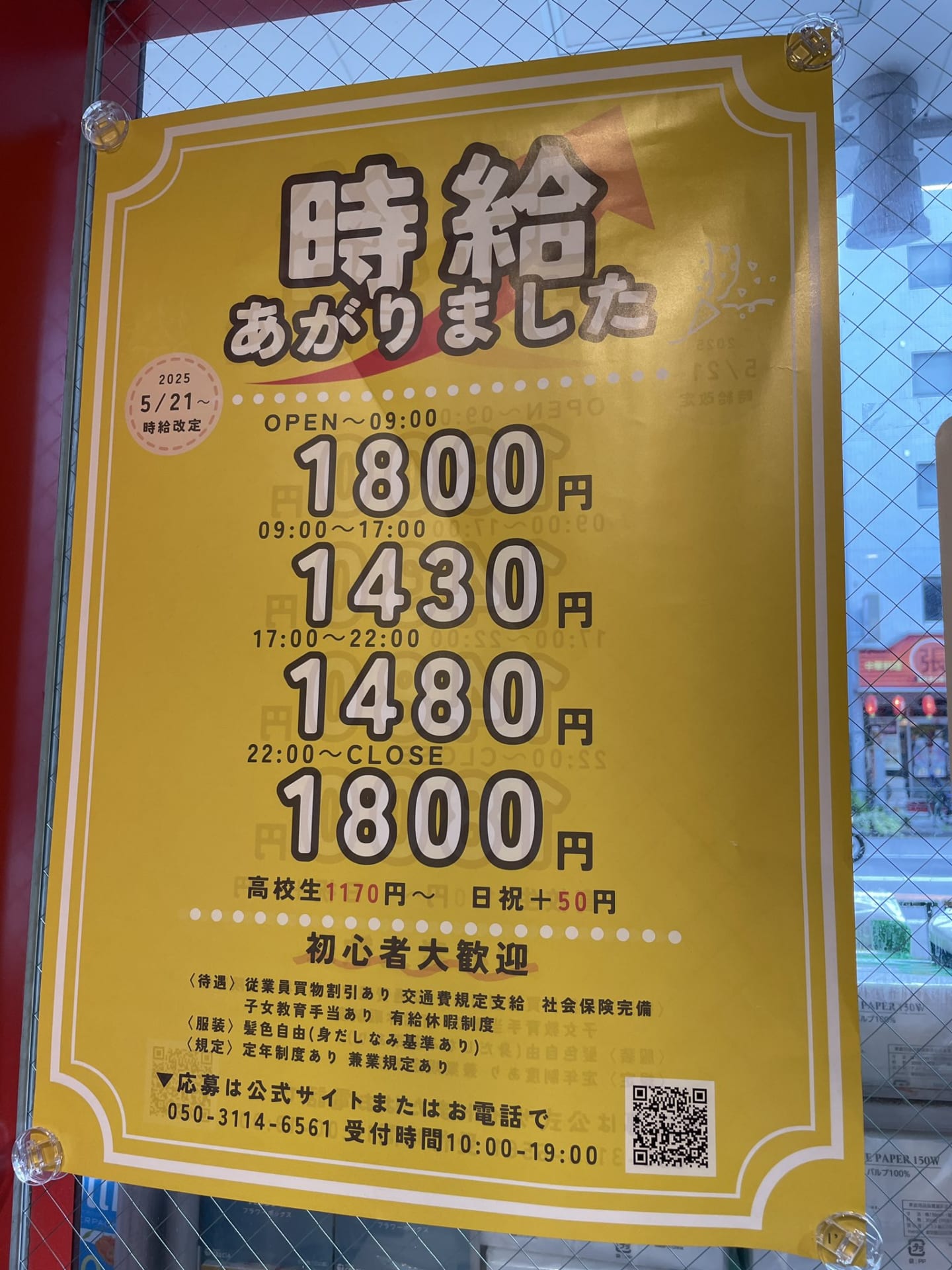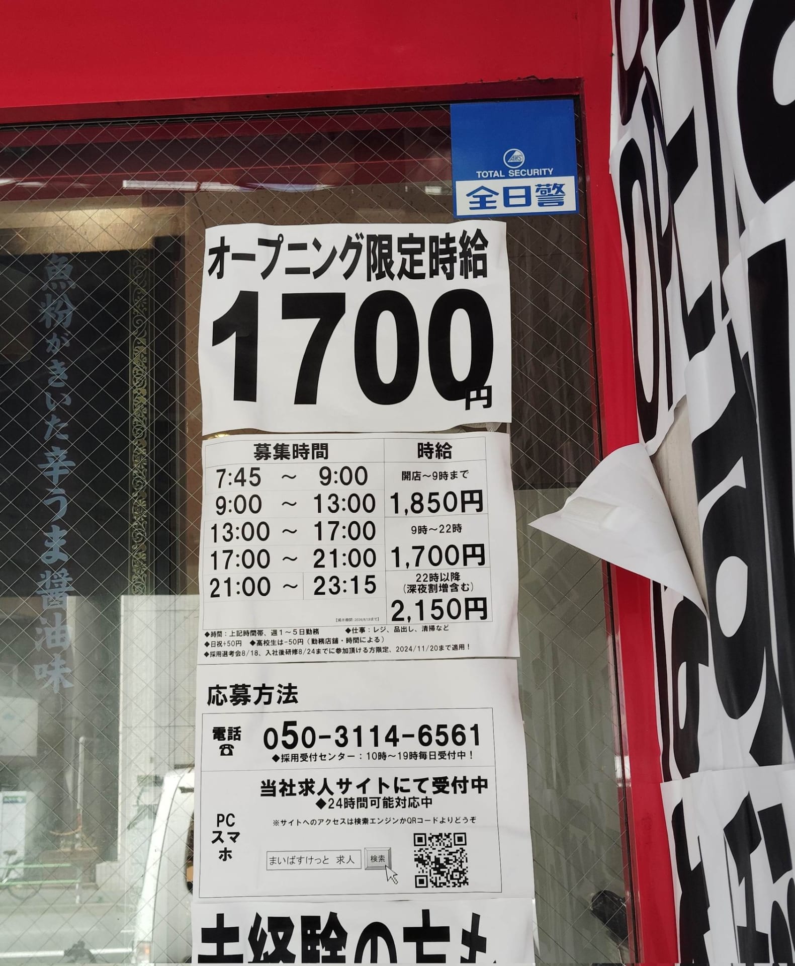 最低賃金上がりまくってついにここまでになったか。流石売り手市場