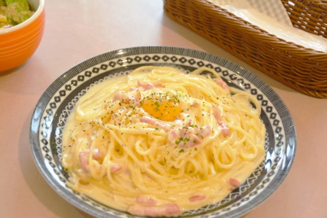 カルボナーラはどっかのファミレスでハンバーグやオムライスにかかってないっけ?
