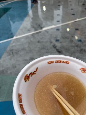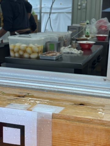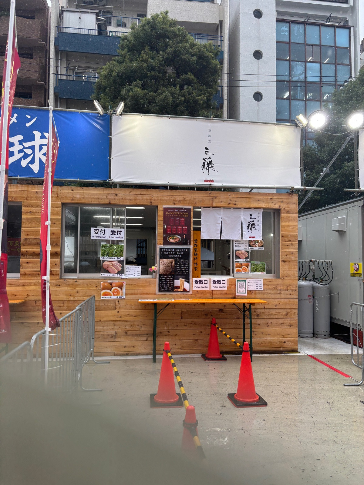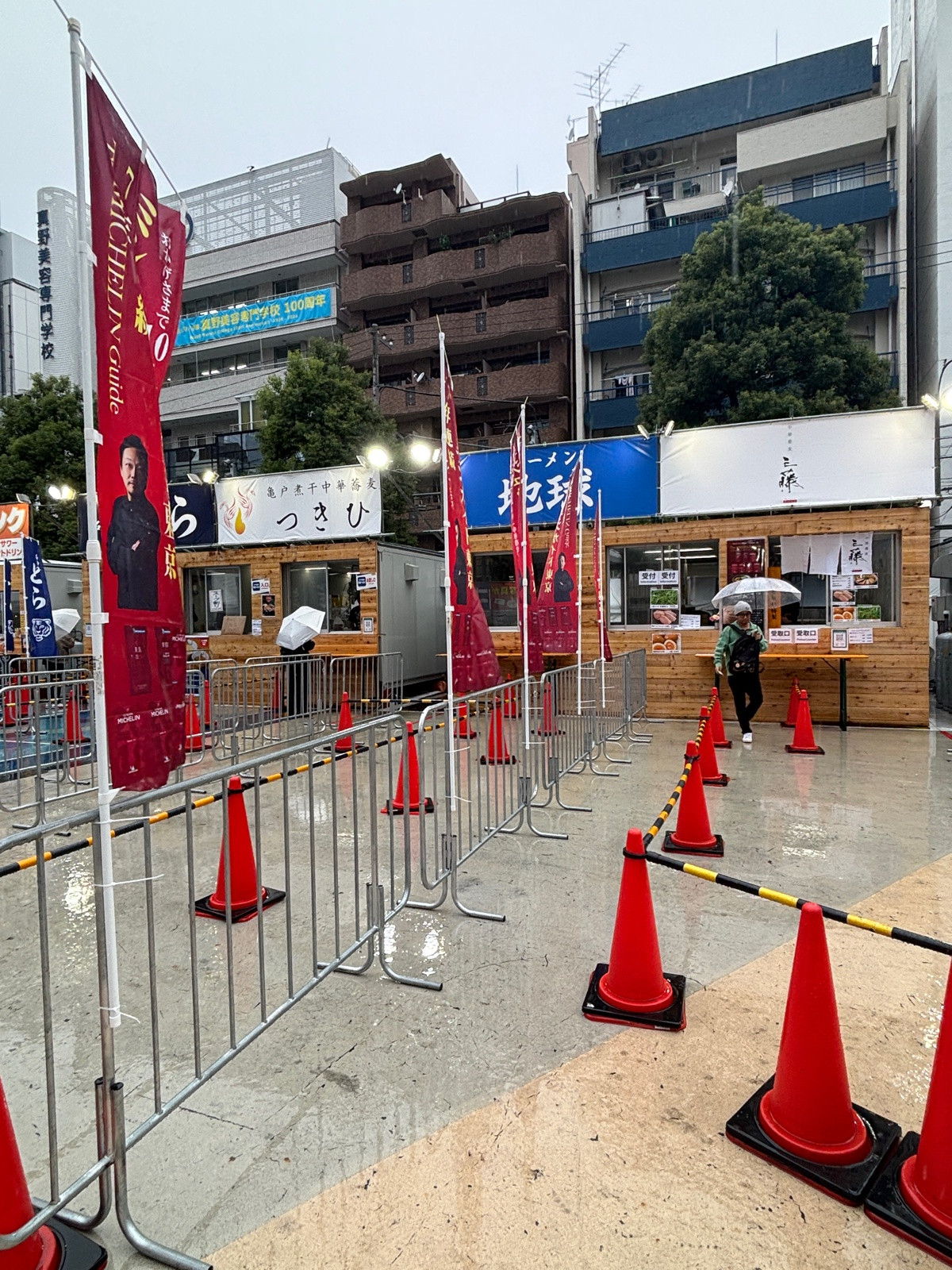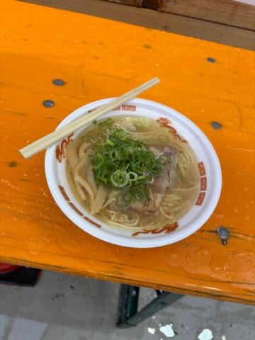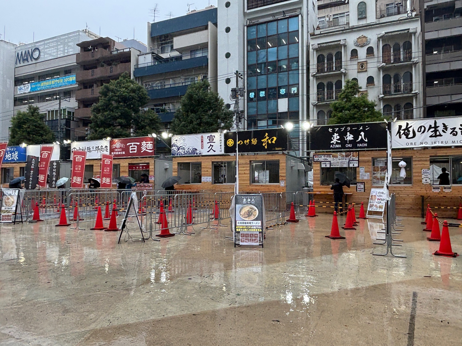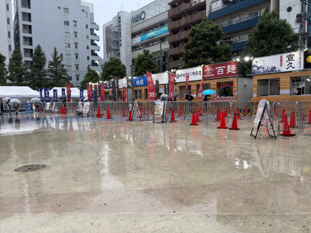 傘差しながら熱々のラーメンを飲食テントまで持ってって食うんかな