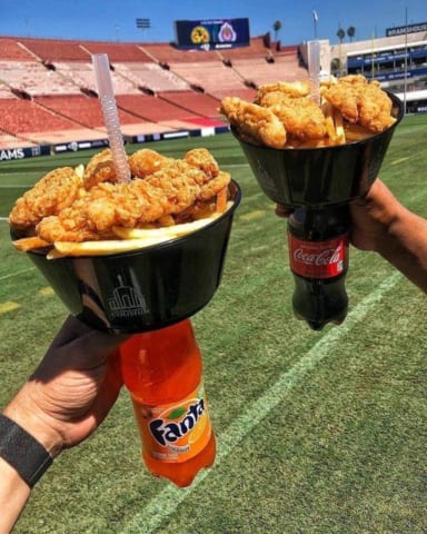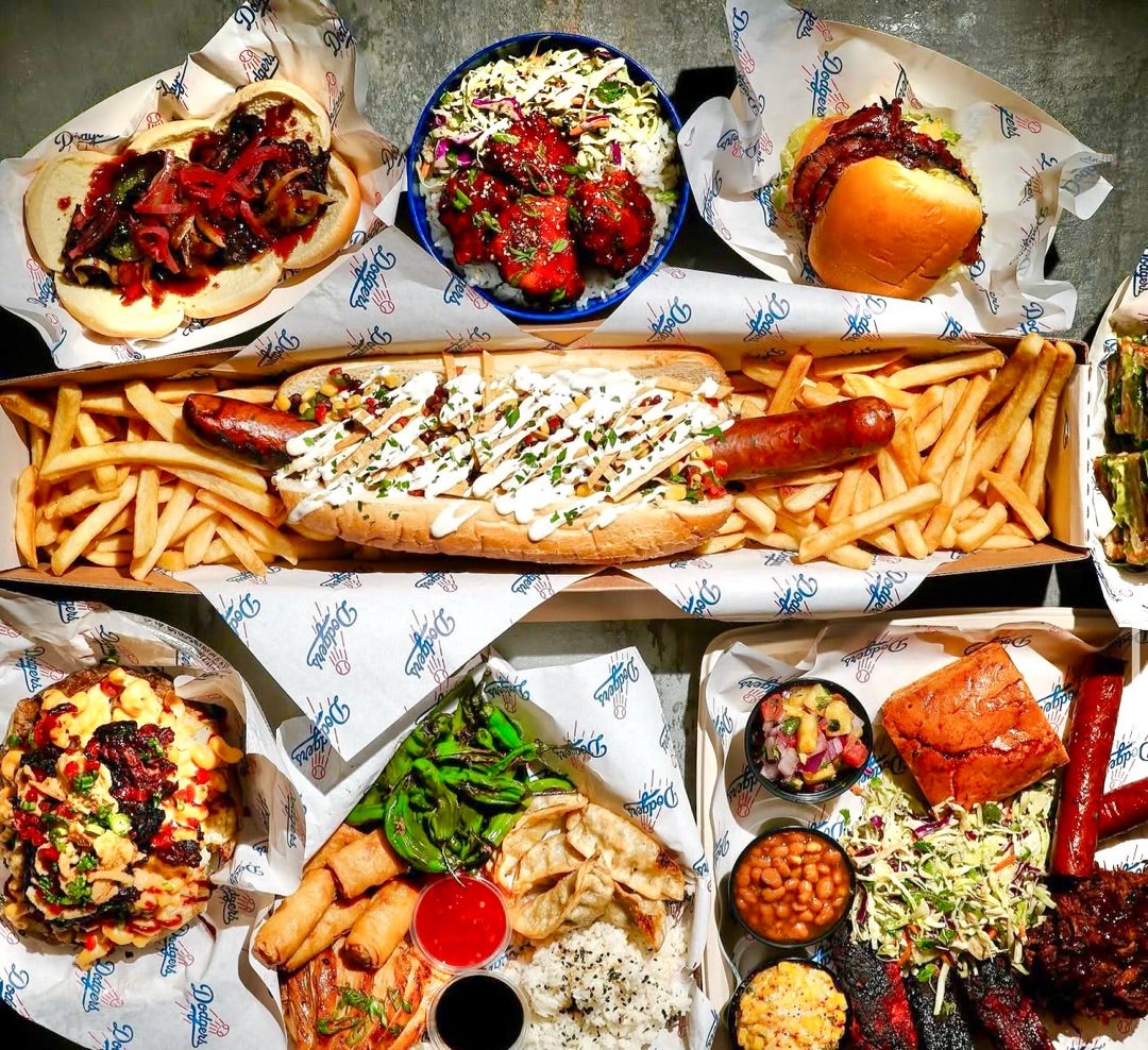 ハンバーガーもホットドッグも山盛りにフライドポテトかけるのはアメリカらしいな