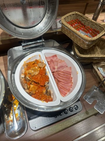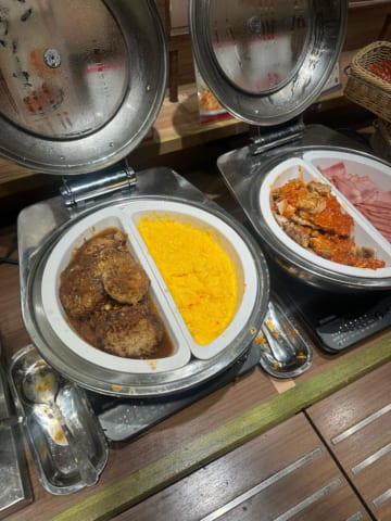 ここはホテル併設で6時半からモーニングビュッフェやってるで