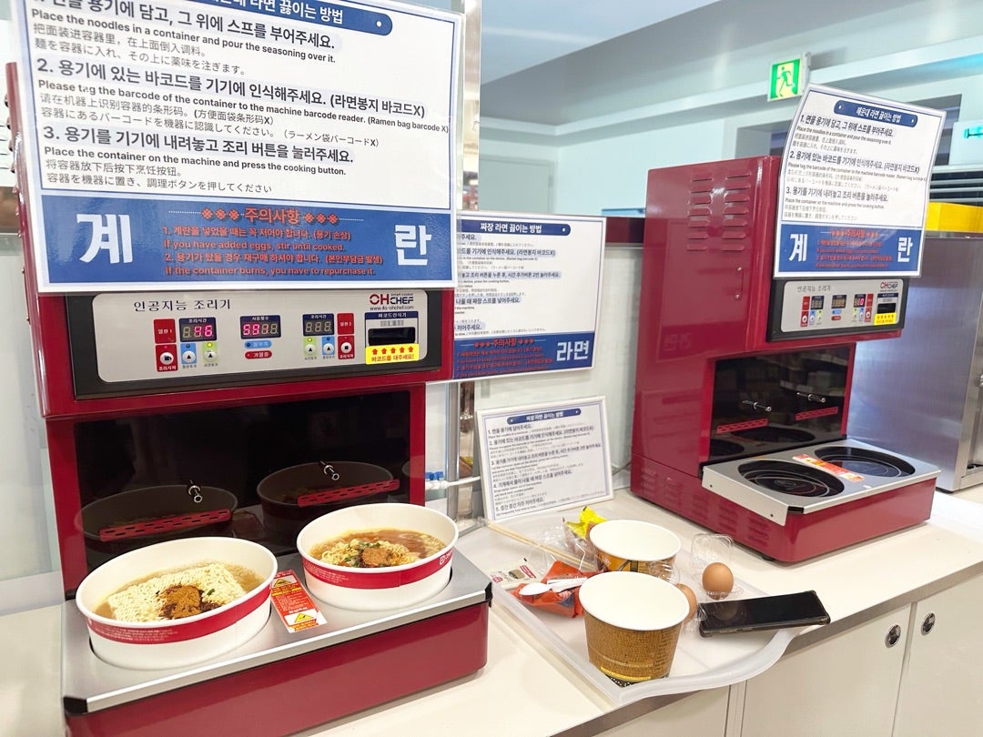 >ソフトバンクロボティクスが開発した専用マシン「STEAMA」を導入し、店内で「できたて麺」を購入した客が自分で操作して調理する。